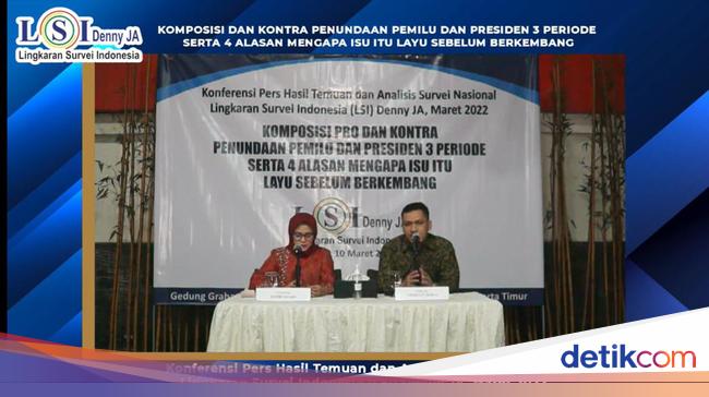 LSI Denny JA merilis sikap masyarakat terkait wacana penundaan Pemilu 2024 dan perpanjangan masa jabatan presiden tiga periode. Mayoritas responden dari berbagai segmen pemilih menolak wacana tersebut.