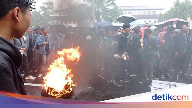 Pantauan detikJabar di lokasi, para massa membentangkan spanduk sepanjang 30 meter dengan berbagai tulisan seperti ‘Info Slot Gacor Buat Beli BBM’ atau ‘Negeri Hukum yang Menyengsarakan Rakyat di Atas Kebijakan Tikus Berdasi.’ Mereka didominasi menggunakan jas almamater berwarna biru.