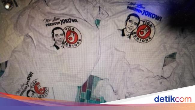 Foto kaus-kaus putih bertuliskan “We Love Presiden Jokowi 3 Periode” beredar di media sosial (medsos). Sejumlah kaus itu disebut akan disebar sebelum Presiden Joko Widodo (Jokowi) mengunjungi Ende, Nusa Tenggara Timur (NTT).